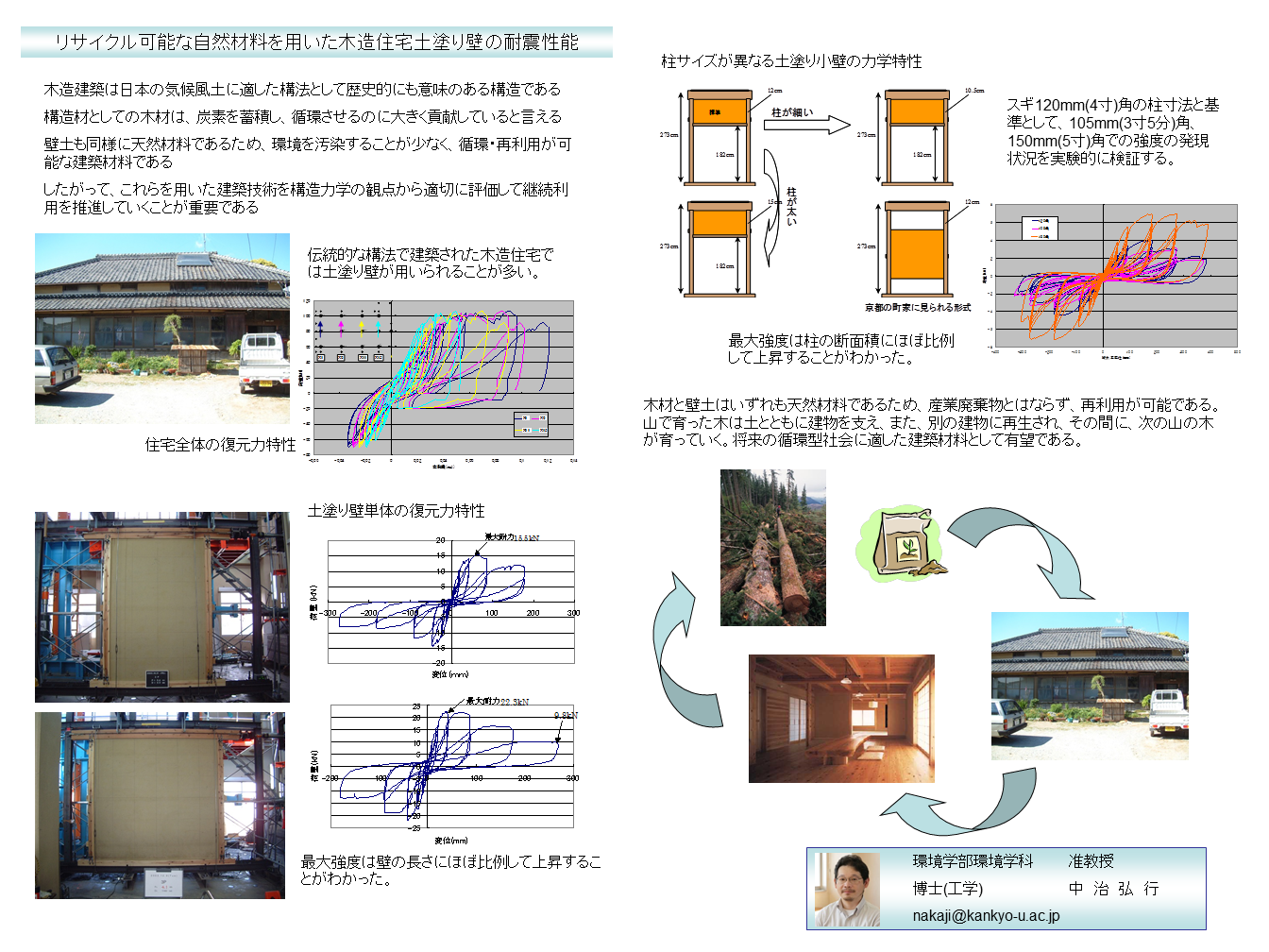 木造建築は日本の気候風土に適した構法として歴史的にも意味のある構造である。 構造材としての木材は、炭素を蓄積し、循環させるのに大きく貢献していると言える 壁土も同様に天然材料であるため、環境を汚染することが少なく、循環・再利用が可能な建築材料である。 したがって、これらを用いた建築技術を構造力学の観点から適切に評価して継続利用を推進していくことが重要である。